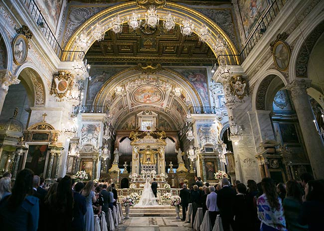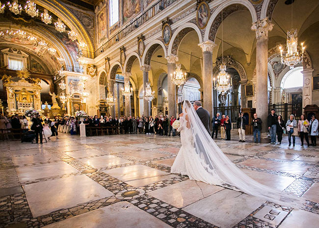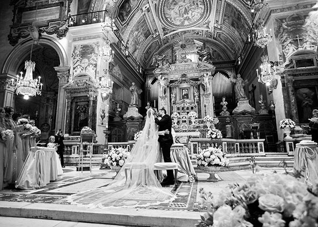 Even if it rained a bit in the evening, Anna Victoria walked up every step of the stairways with her bridal party before entering the church and walking down the long aisle with her father, to meet Luca at the altar.