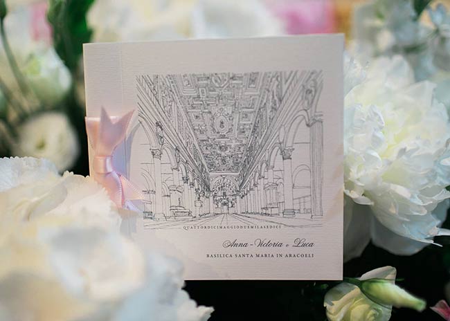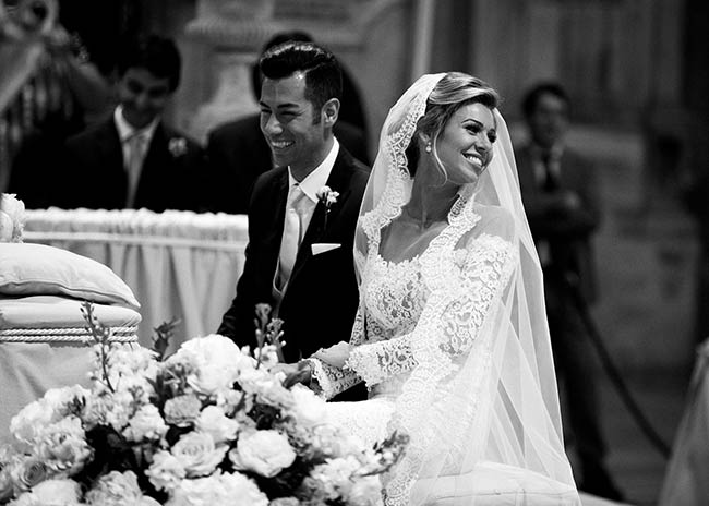 They tied the knot at lordly Santa Maria in Aracoeli church, one of the greatest and most known Abbey (Basilica) in Rome. It is located just on Capitoline Hill, next to Vittoriano Palace, Rome Town Hall and behind ruins of Roman Forum.