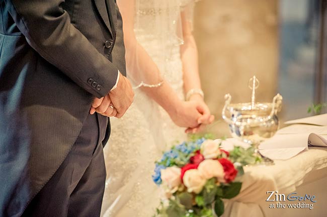 The church was decorated with colourful flowers from red to blue that our floral designer composed with a typical English style.