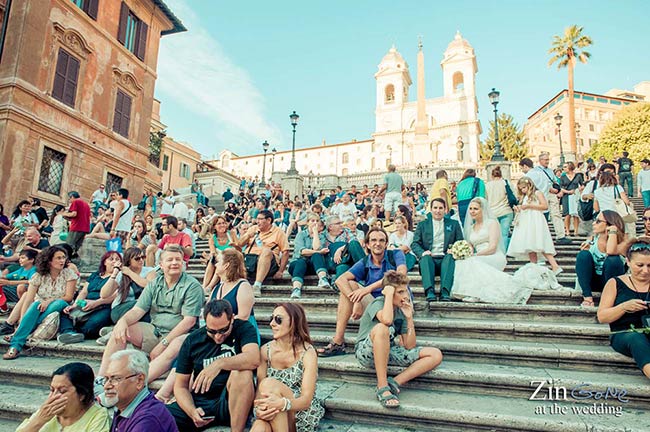Some pictures in Piazza del Popolo and then guests and bride and groom went with the official wedding photographer to have some pictures around Rome, in some stunning corners such as Piazza di Spagna and Villa Borghese.