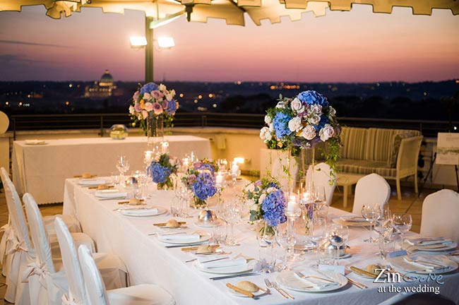 Flora RoofTop Terrace is the perfect setting for a wedding reception as it has a covered elegant by glass windows that allow you to admire the beauty of the landscape. It also has an open air area with lounge sofas where you can breath the light Roman wind having a cocktail watching sunset behind Saint Peter’s basilica.