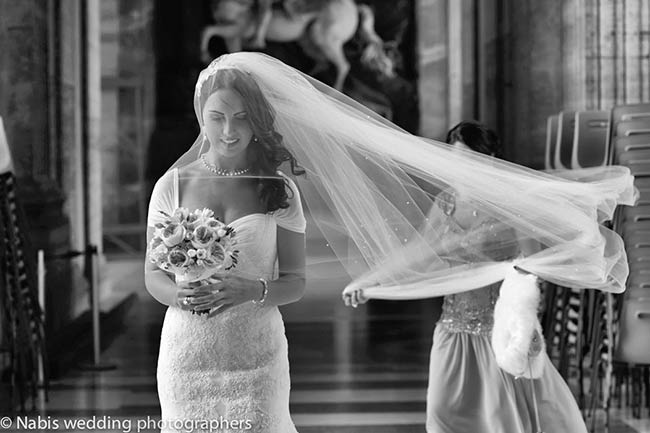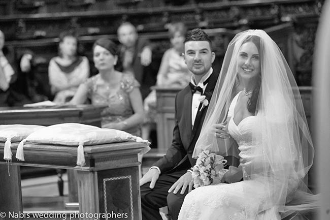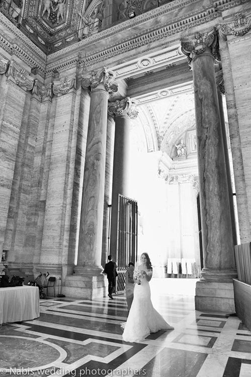 Once the ceremony ended, bride and groom took the chance to have some pictures inside the Basilica with the background of magnificent marbles.
